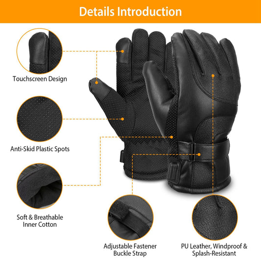 Electric Heated Gloves USB Plug Touchscreen Thermal Gloves Leather Windproof Winter Hands Warmer Unisex