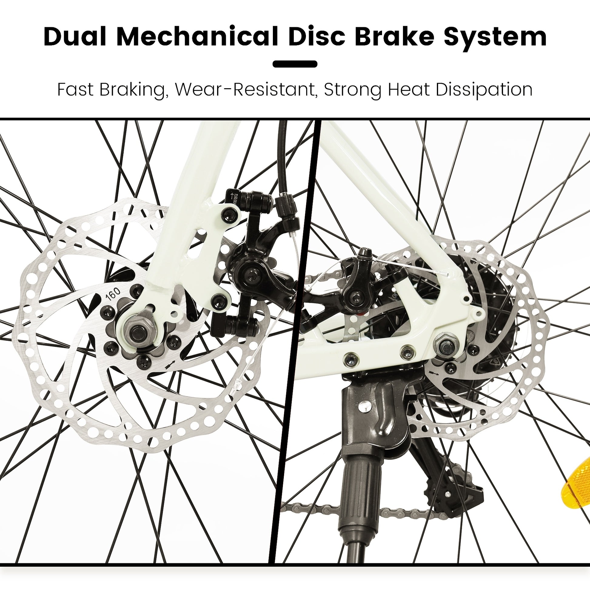 Dual Mechanical Disc Brakes: This road bike features dual mechanical disc brakes, providing powerful and reliable stopping power in all weather conditions. This ensures your safety and gives you the confidence to tackle any terrain.