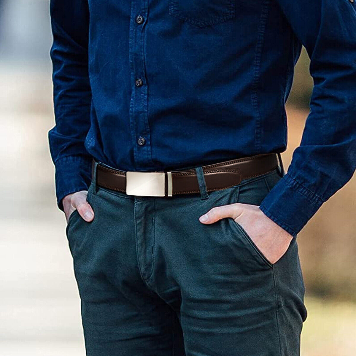 Discover unparalleled comfort and style with our men's ratchet belt, expertly crafted from premium synthetic leather. Designed for the modern man, this innovative hole-less belt features an adjustable fit for waists up to 44 inches, allowing you to effortlessly trim it to your perfect size. The automatic slide buckle ensures a seamless experience‚ just slide, lock, and go! Whether you're dressing up for a formal occasion or keeping it casual, this versatile accessory complements every outfit.