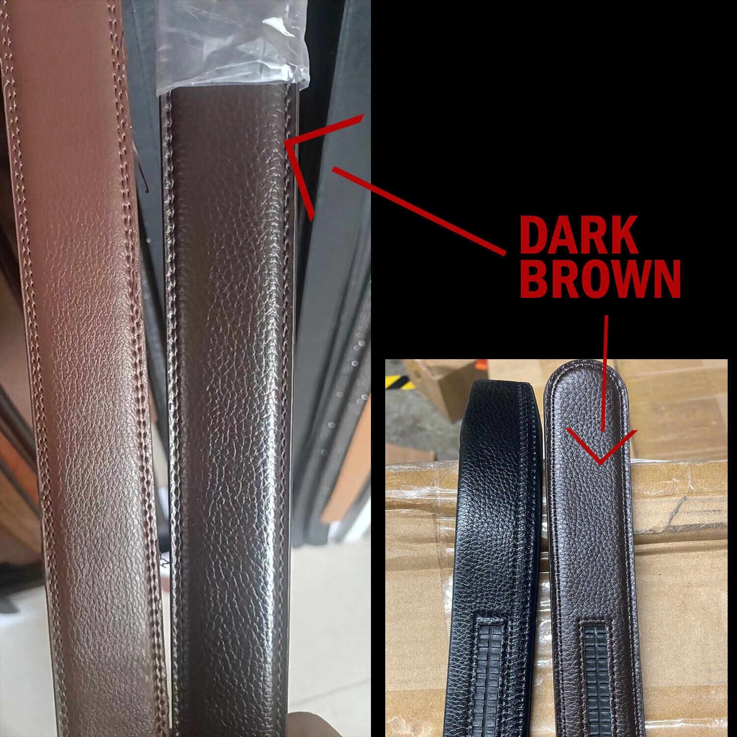 Microfiber Leather Mens Ratchet Belt, Adjustable Automatic Buckle, Dark Brown